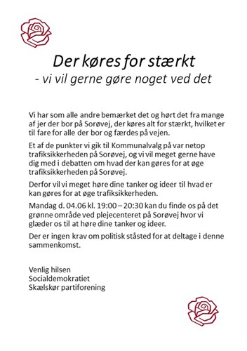 Mødet er åbent for alle borgere på Sorøvej og tilstødende sideveje.
