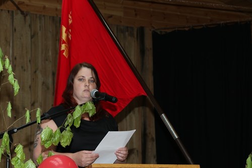 Helene Glerup fra Enhedslisten synger sin 1 maj tale