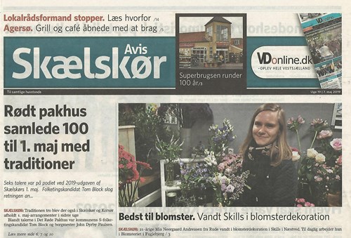 Forside i Skælskør Avis med omtale af 1. maj arrangement