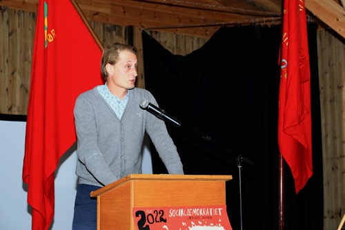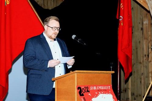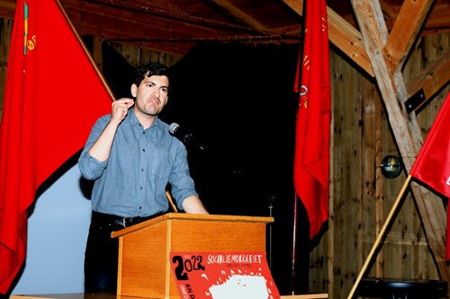 Folketingskandidat Frederik Vad, Socialdemokratiet, på talerstolen