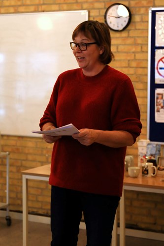 Anne Bjergvang forklarer gættekonkurrencens regler