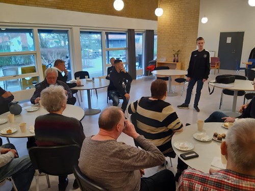 Seniorerne lytter til en af gæstene fra Recovery Bulls