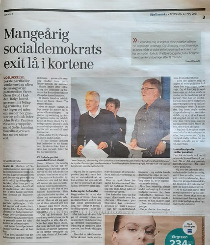 Det trak overskrifter og forsider i både Sjællandske og Ugeavisen da et flertal stemte Steen Olsen ud af Byrådet.